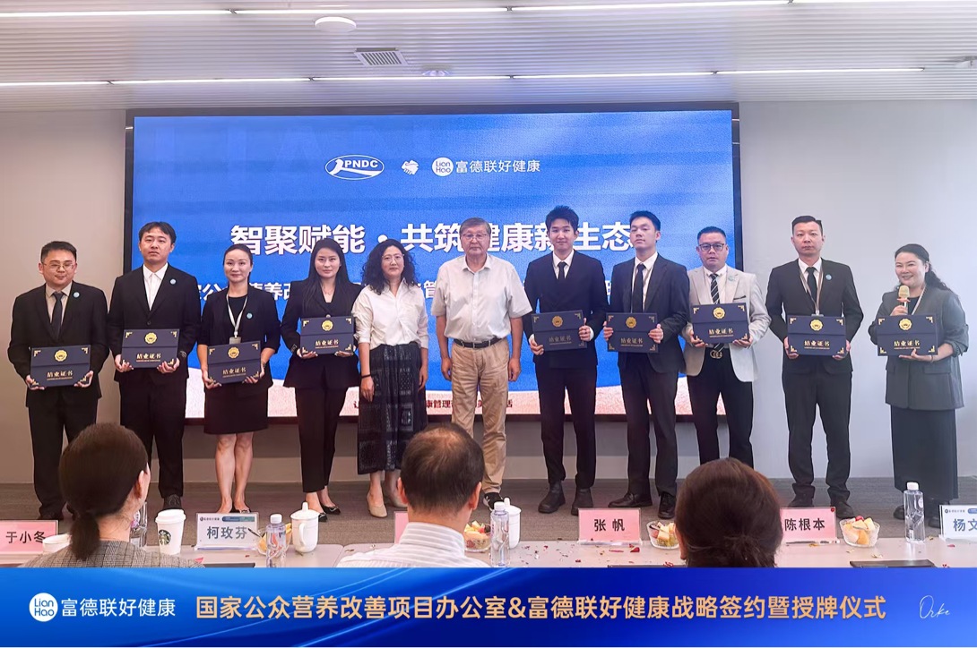 近日,國家公眾營養改善項目辦公室在深圳舉辦了“心腦血管零級預防項目推廣中心“ 啟動儀式,于小冬主任為推廣中心的承擔單位富徳聯好健康管理有限公司授牌,并為心腦血管零級預防研修班的合格畢業學員頒發了證書。